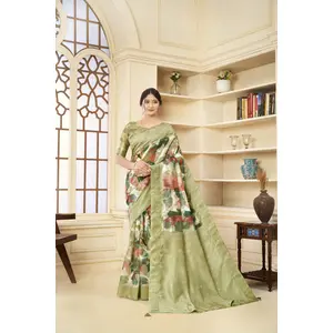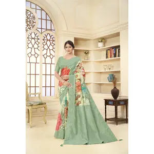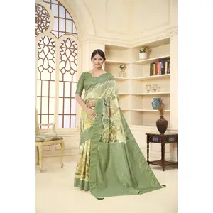 Green Color Linen Cotton Wevon...