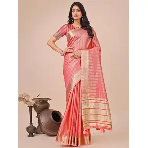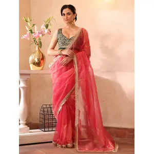 Pink Color Organza Fabric Wevon...