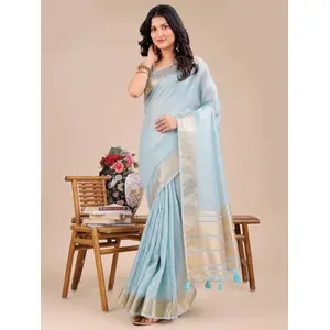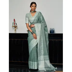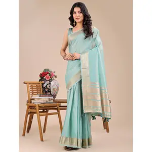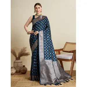Teal Blue Color Satin Silk Wevon Jari...