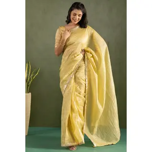 Yellow Color Chiffon Fabric Ready To...