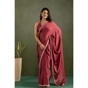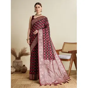 Maroon Color Satin Silk Wevon Jari...