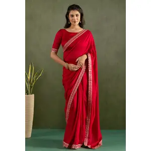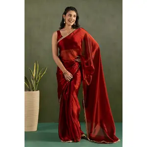 Red Color Chiffon Fabric Ready To...