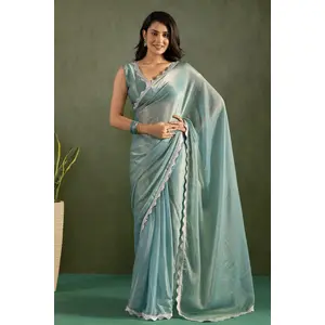 Blue Color Chiffon Fabric Ready To...