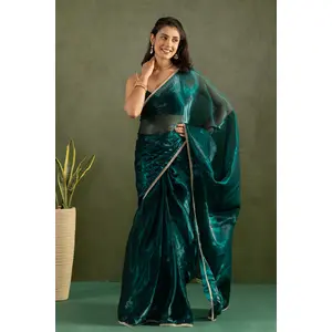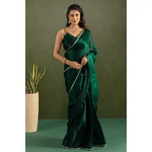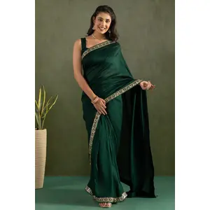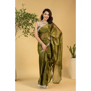 Green Color Satin Silk Wevon Jari...
