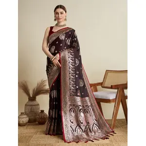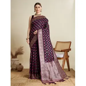 Wine Color Satin Silk Wevon Jari...