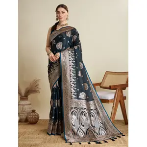 Blue Color Satin Silk Wevon Jari...