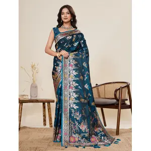 Teal Color Wevon Jari Meenakari...