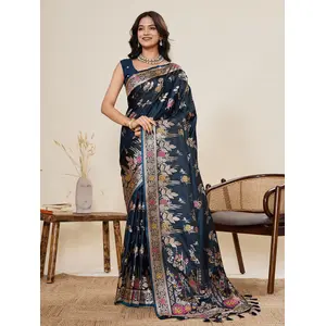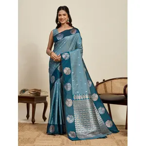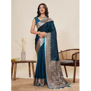 Blue Color Wevon Jari Meenakari...