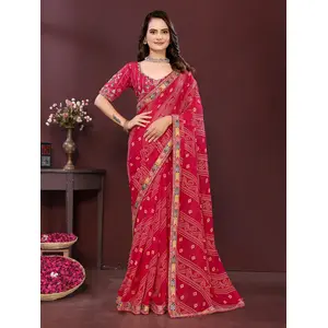 Pink Color Georgette Fabric Bandhej...
