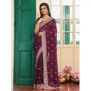 Wine Color Designer Chiffon Fabric...