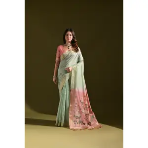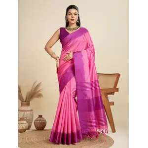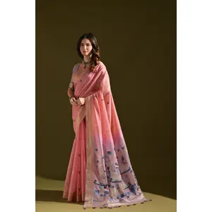 Pink Color Khadi Raw Silk Wevon Pallu...