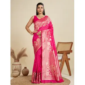 Pink Color Wevon Jari Rich Pallu...
