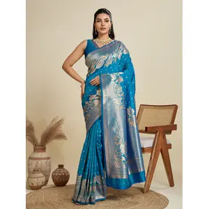 Teal Blue Color Wevon Jari Rich Pallu...