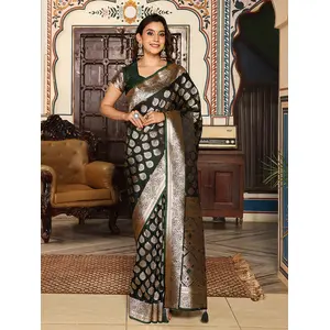 Bottle Green Color Silk Blend Woven...