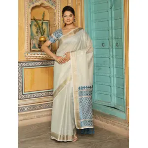 Blue Color Silk Blend Woven Designer...