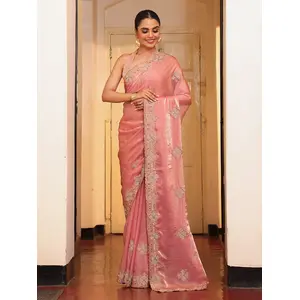 Pink Color Tissue Fabric Embroidery...