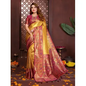 Mustard Color Banarasi Tissue Silk...