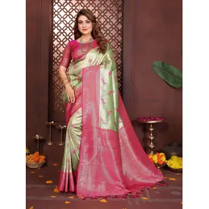 Green Color Banarasi Tissue Silk...