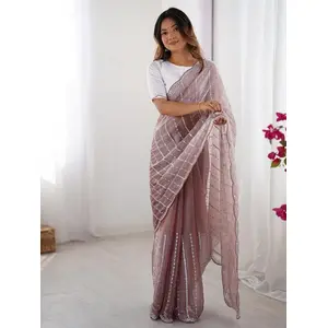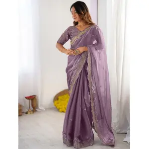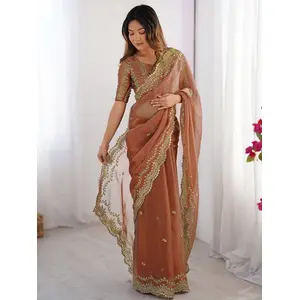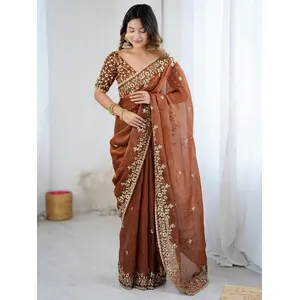 Brown Color Designer Tabby Organza...