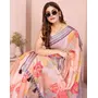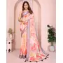Peach Color Linen Cotton Fabric Festive Looks Printed Saree