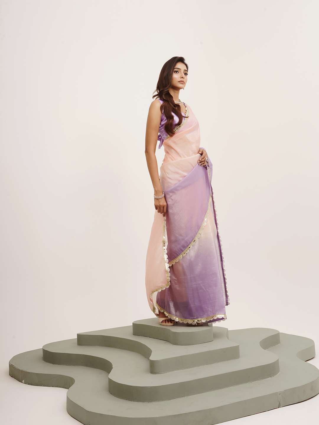 Peach Color Tissue Fabric Embellished Sequinned Work Fancy Saree