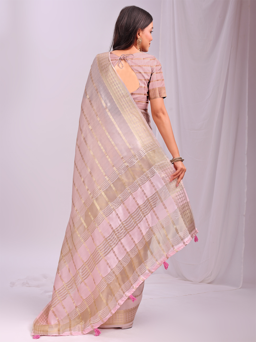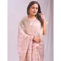 Peach Color Woven Zari Designer Ethnic Organza Fabric Saree