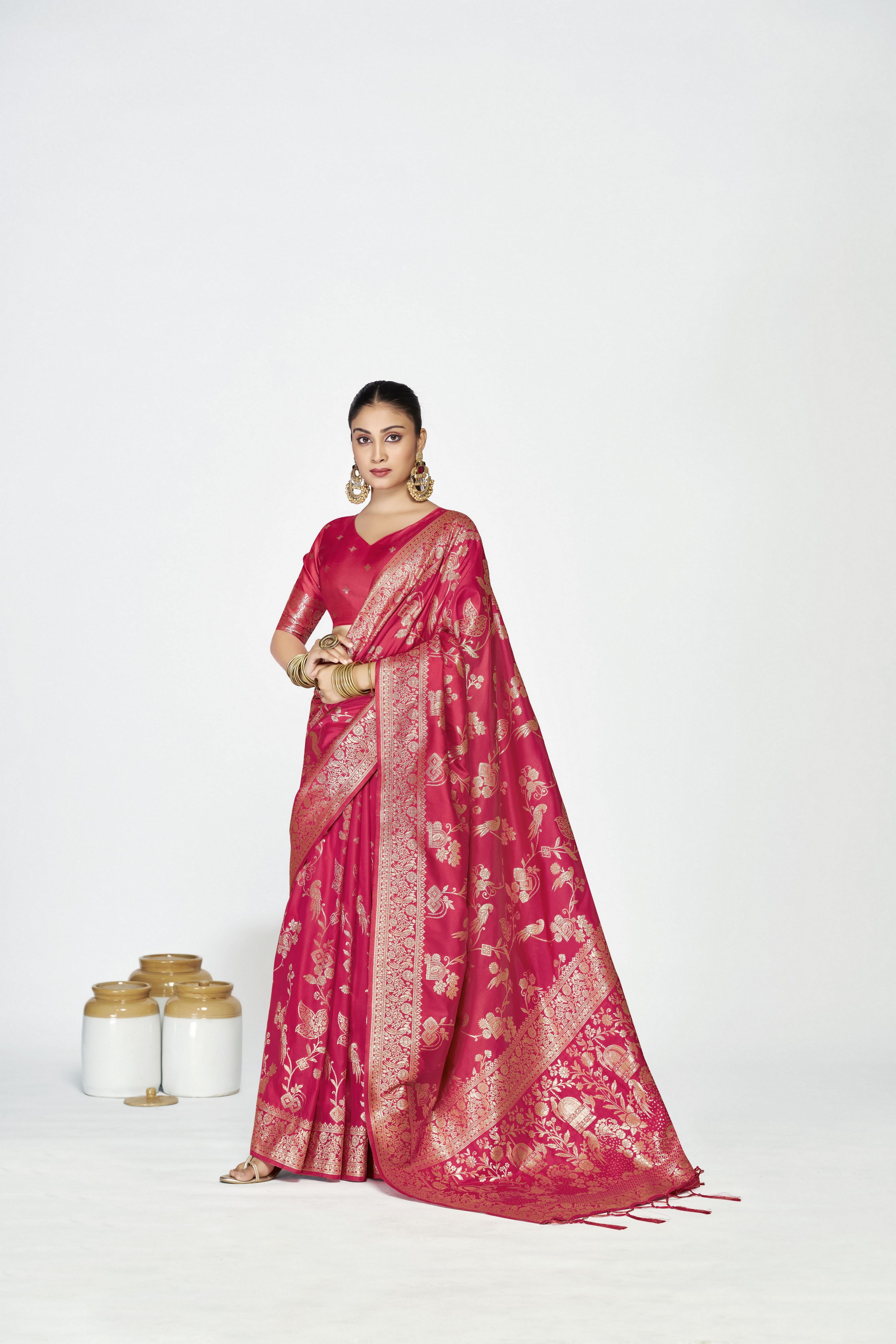 Pink Color Banarasi Silk Fabric Woven Jari Designer Ceremonial Partywear Saree