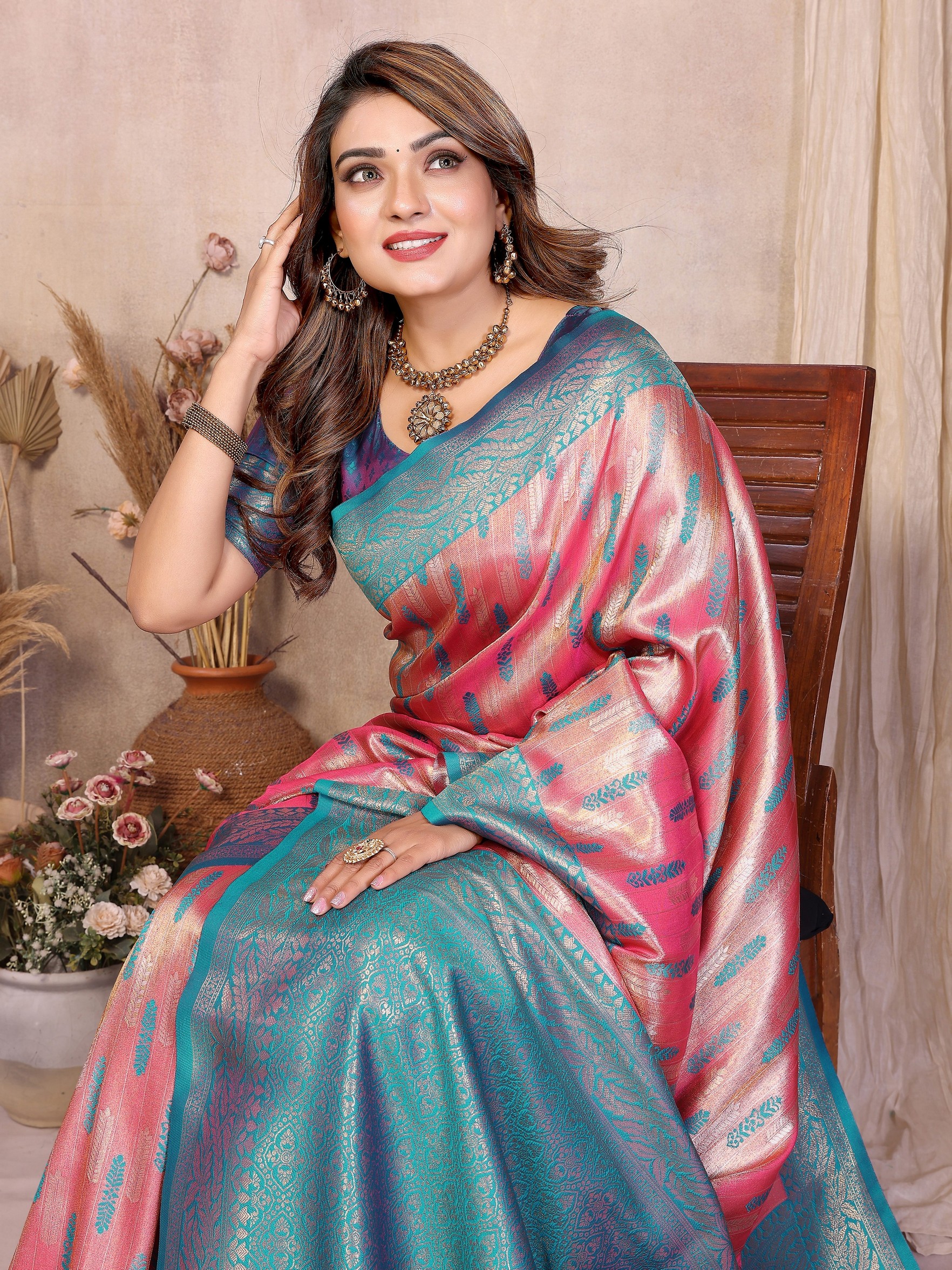 Pink Color Beautiful Banarasi Tissue Silk Rich Sophisticated Saree