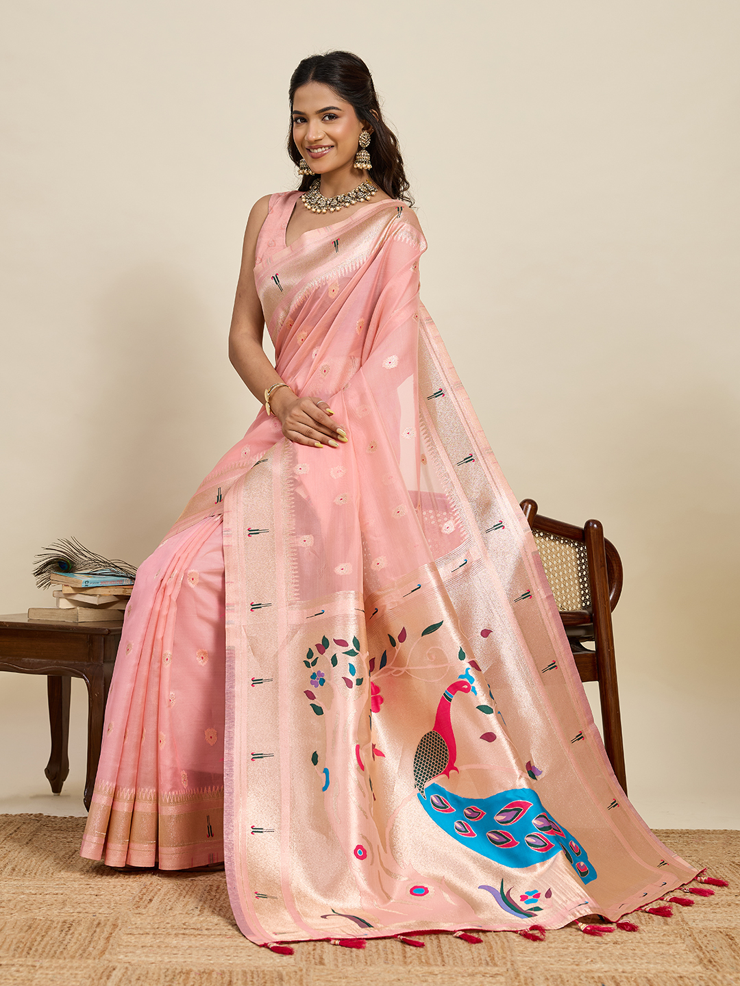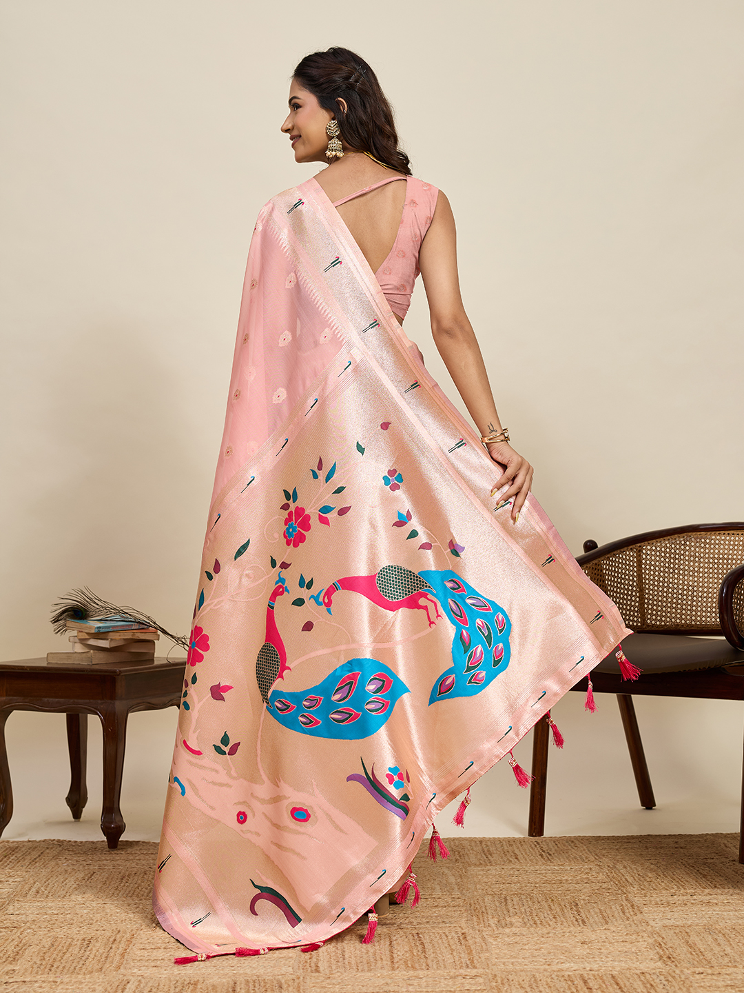 Pink Color Cotton Silk Fabric Wevon Meenakari Designer Ceremonial Saree