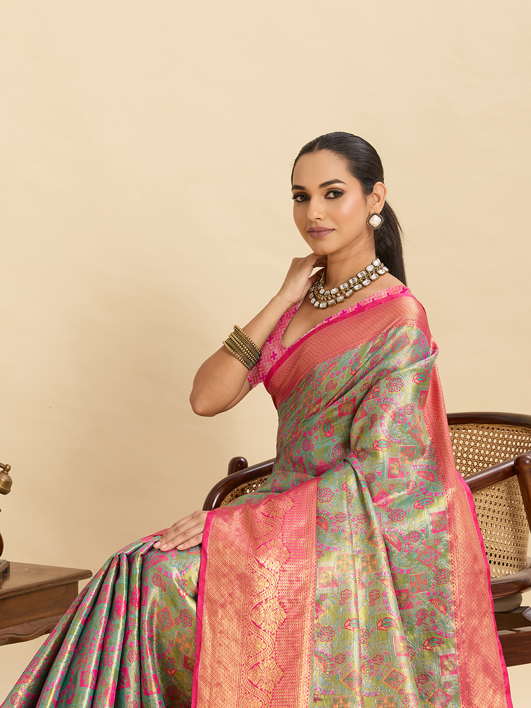 Pink Color Graceful Wevon Jari Designer Silk Blended Partywear Saree