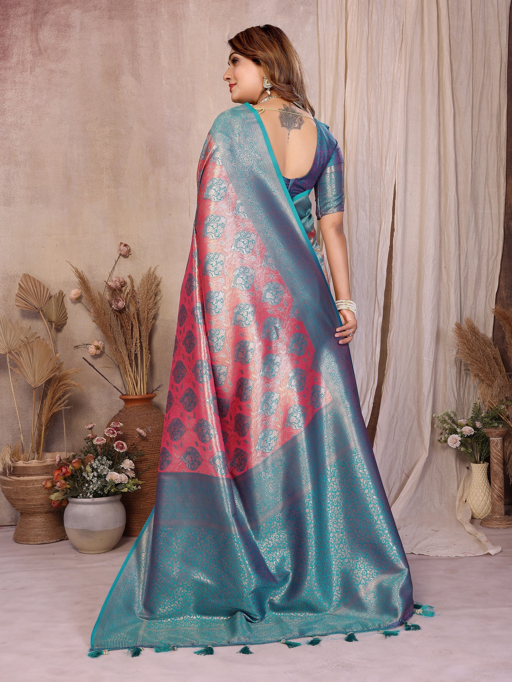 Pink Color Heavy Rich Banarasi Tissue Silk For Ceremonial Traditional Looks
