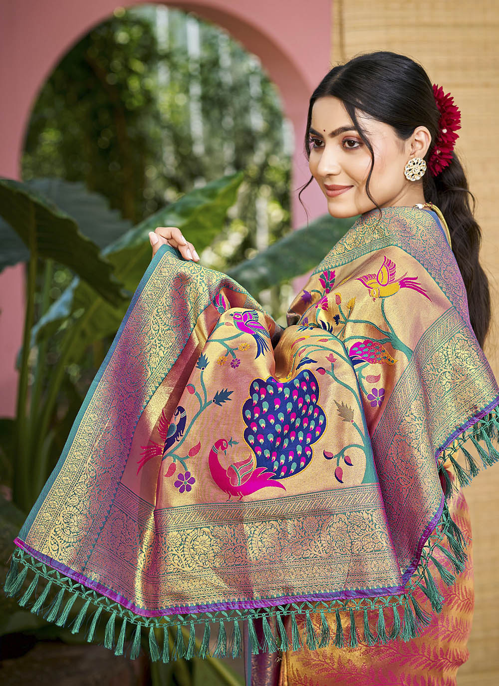 Pink Color Kanjivaram Silk Woven Jari Designer Ethnic Saree