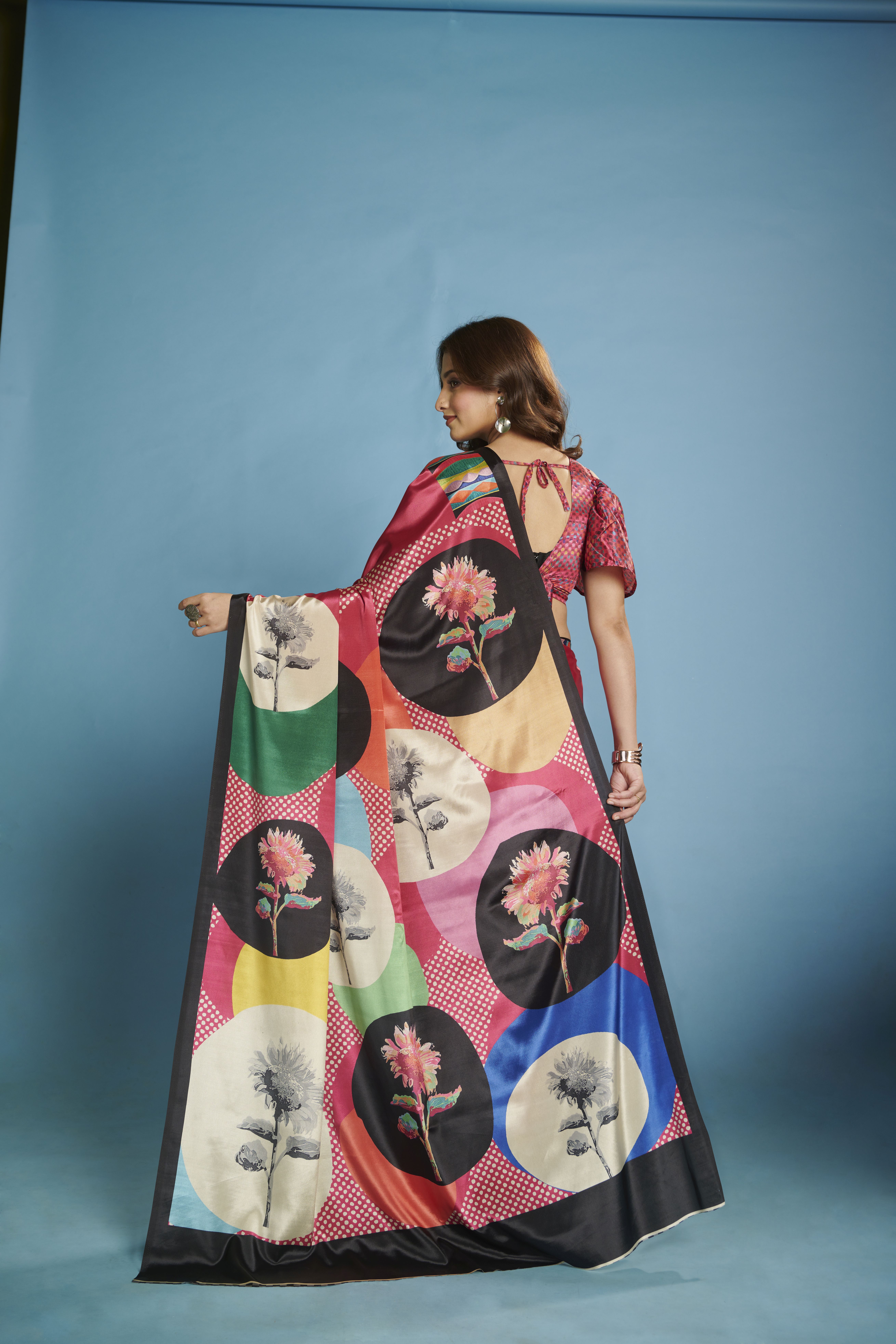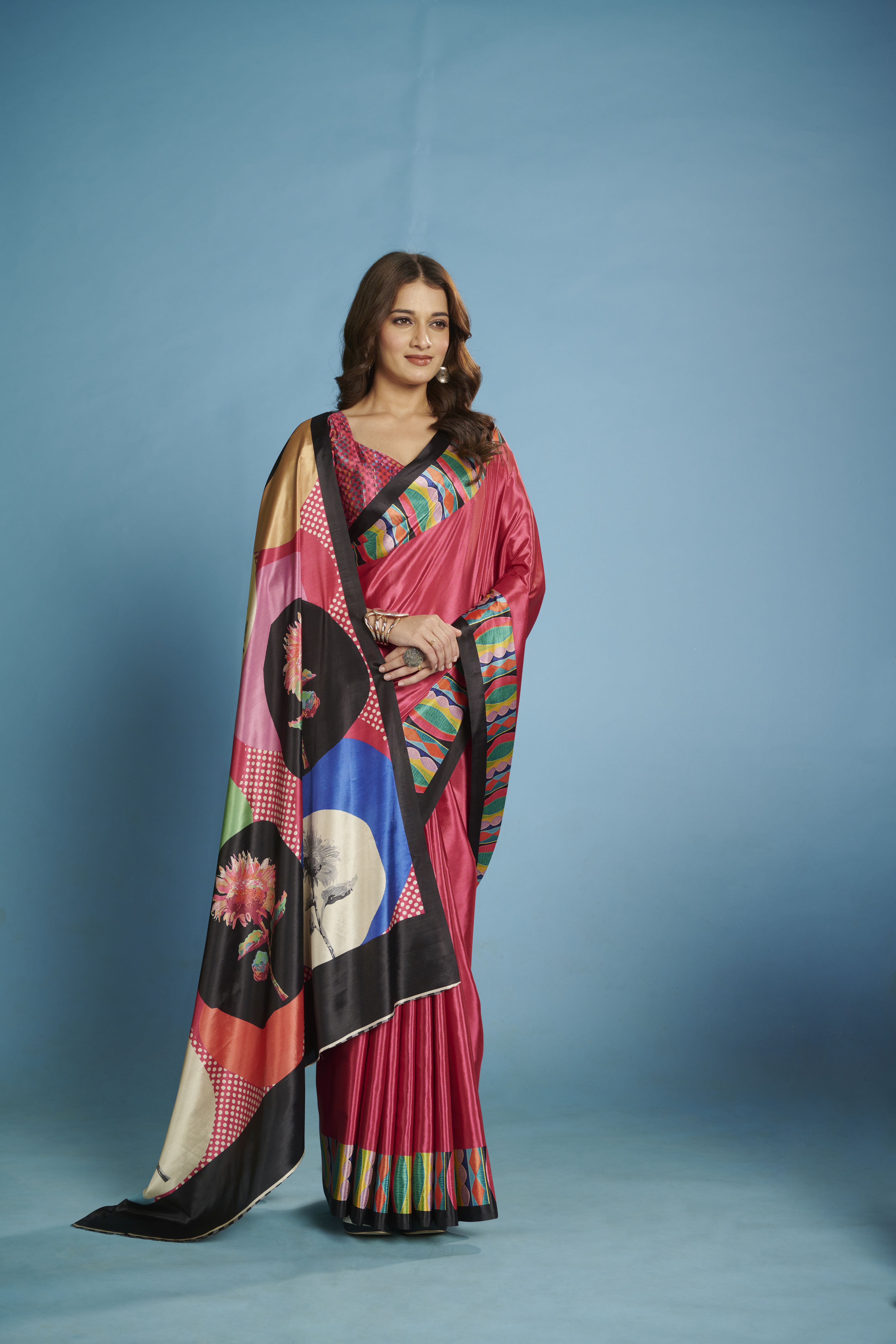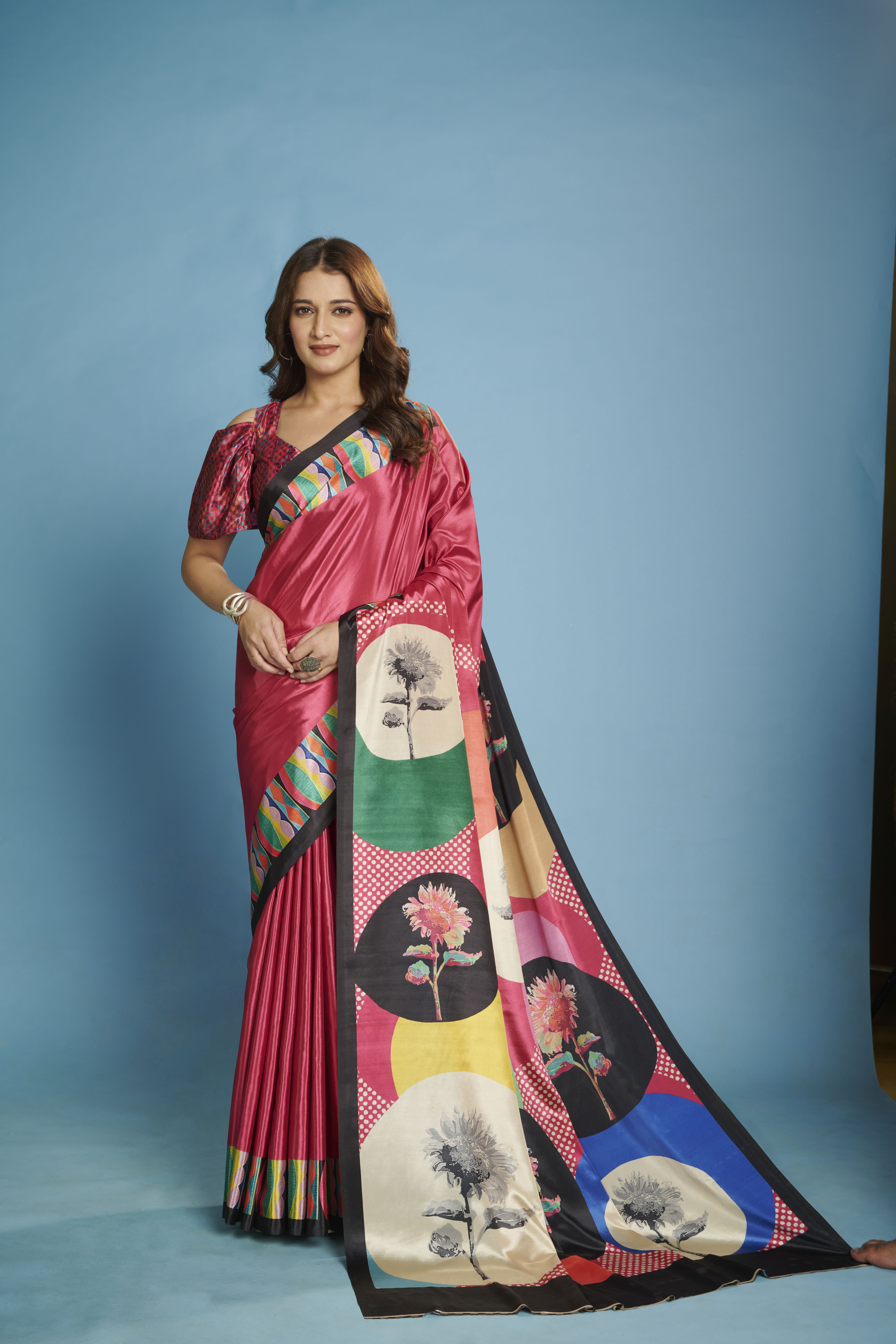 Pink Color Malai Crepe Silk Fabric Beautiful Digital Printed Saree