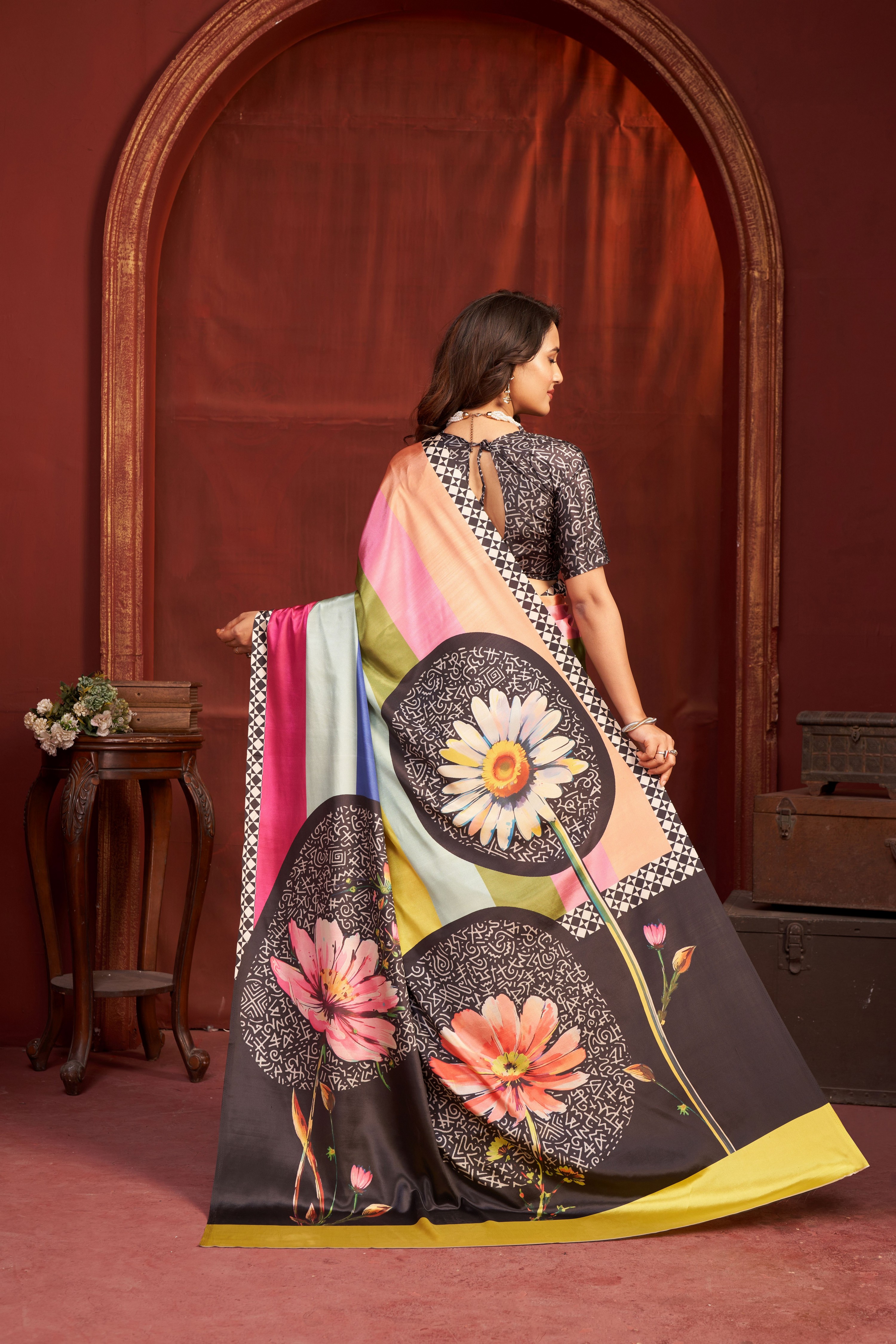Pink Color Malai Crepe Silk Fabric Designer Digital Printed Girlie Fashinova Saree