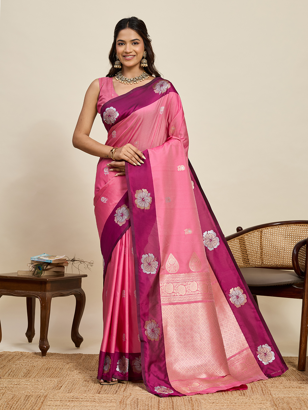 Pink Color Soft Silk Fabric Woven Jari Designer Ethnic Indian Saree