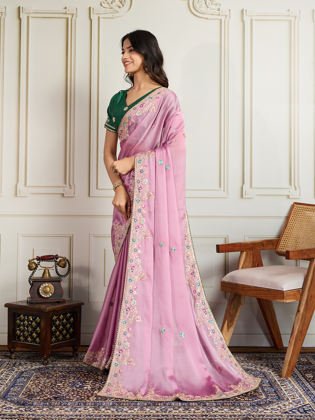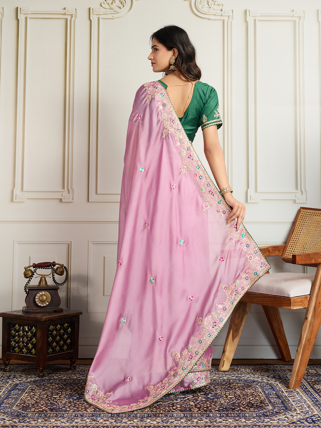 Pink Color Star Georgette Fabric Designer Embroidery Work Heavy Ceremonial Saree