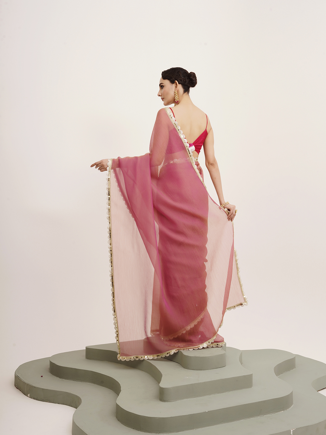 Pink Color Tissue Fabric Embellished Sequinned Work Fancy Saree