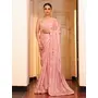 Pink Color Tissue Fabric Embroidery Work Partywear Saree