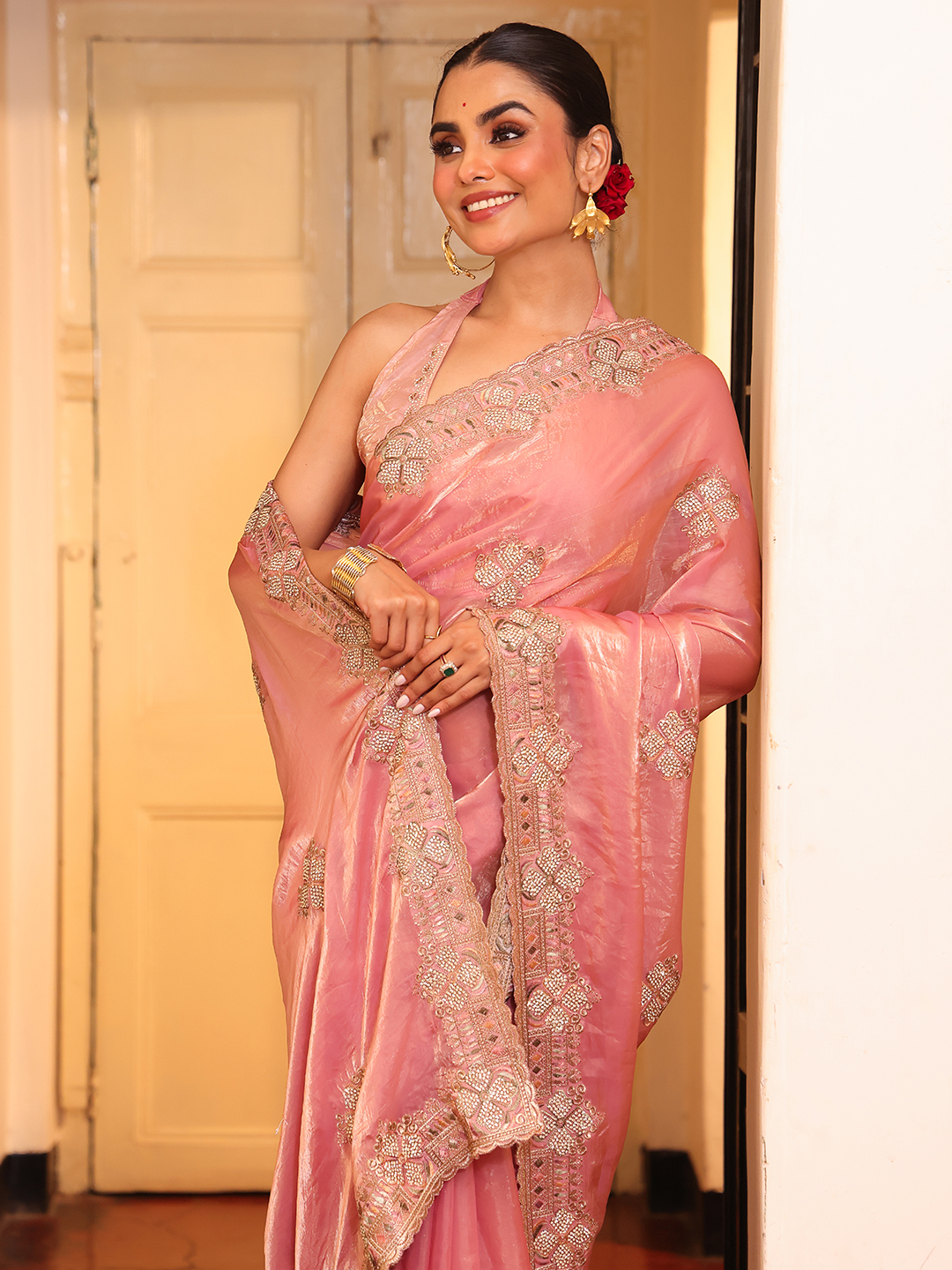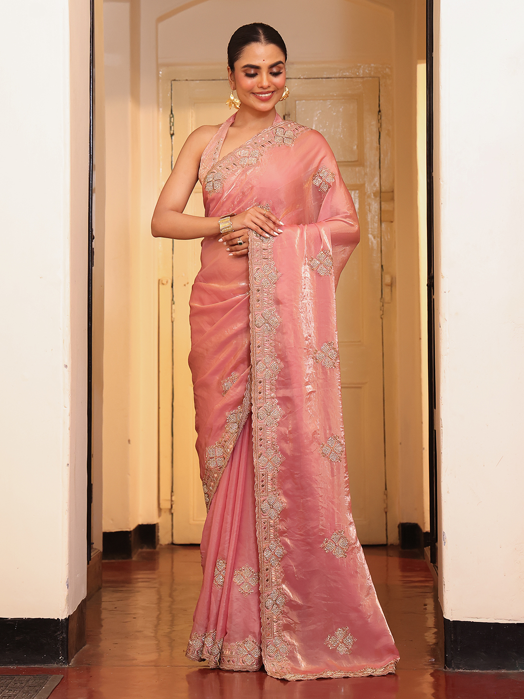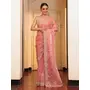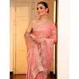 Pink Color Tissue Fabric Embroidery Work Partywear Saree