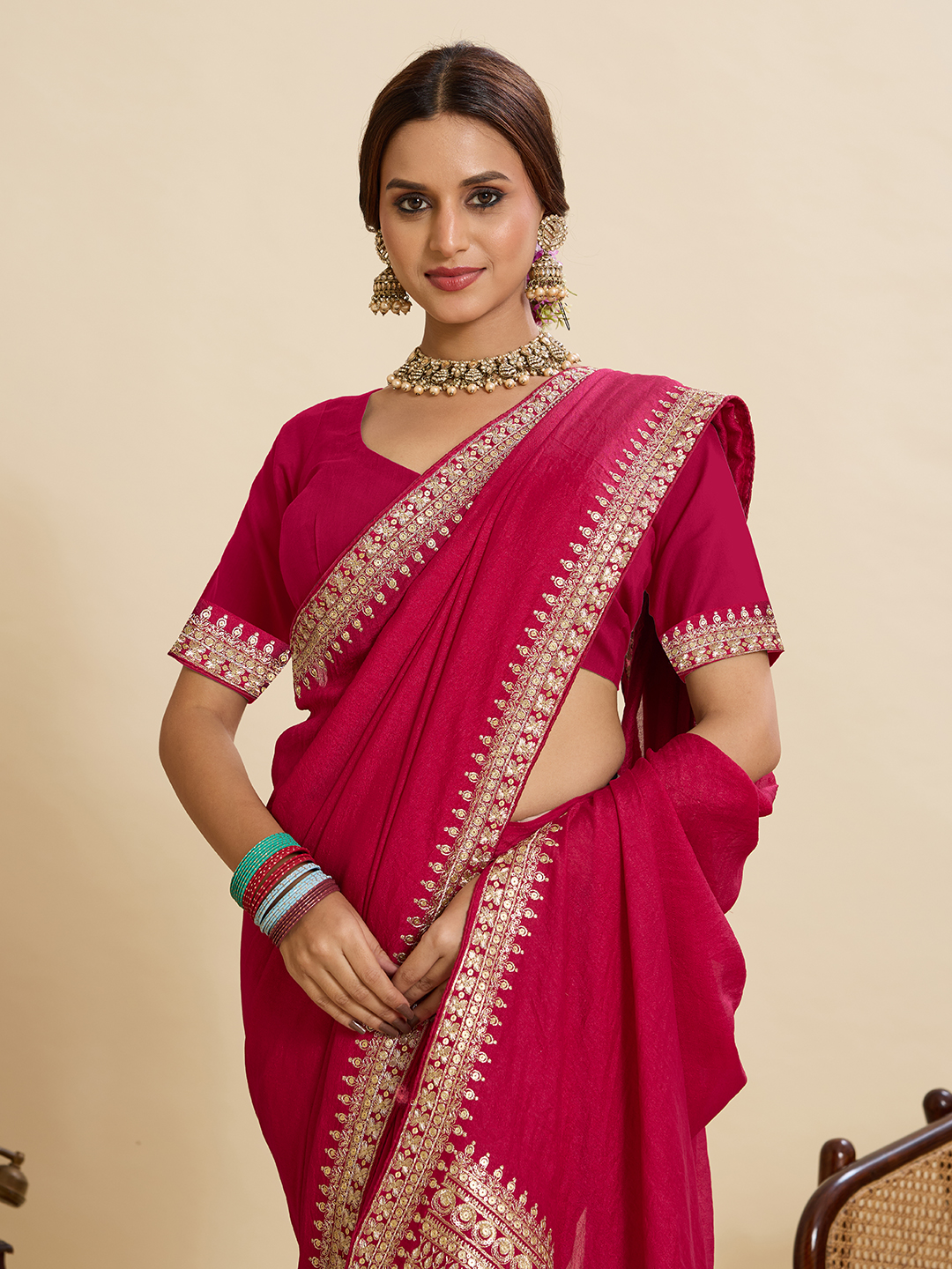 Pink Color Vichitra Silk Fabric Beautiful Partywear Saree