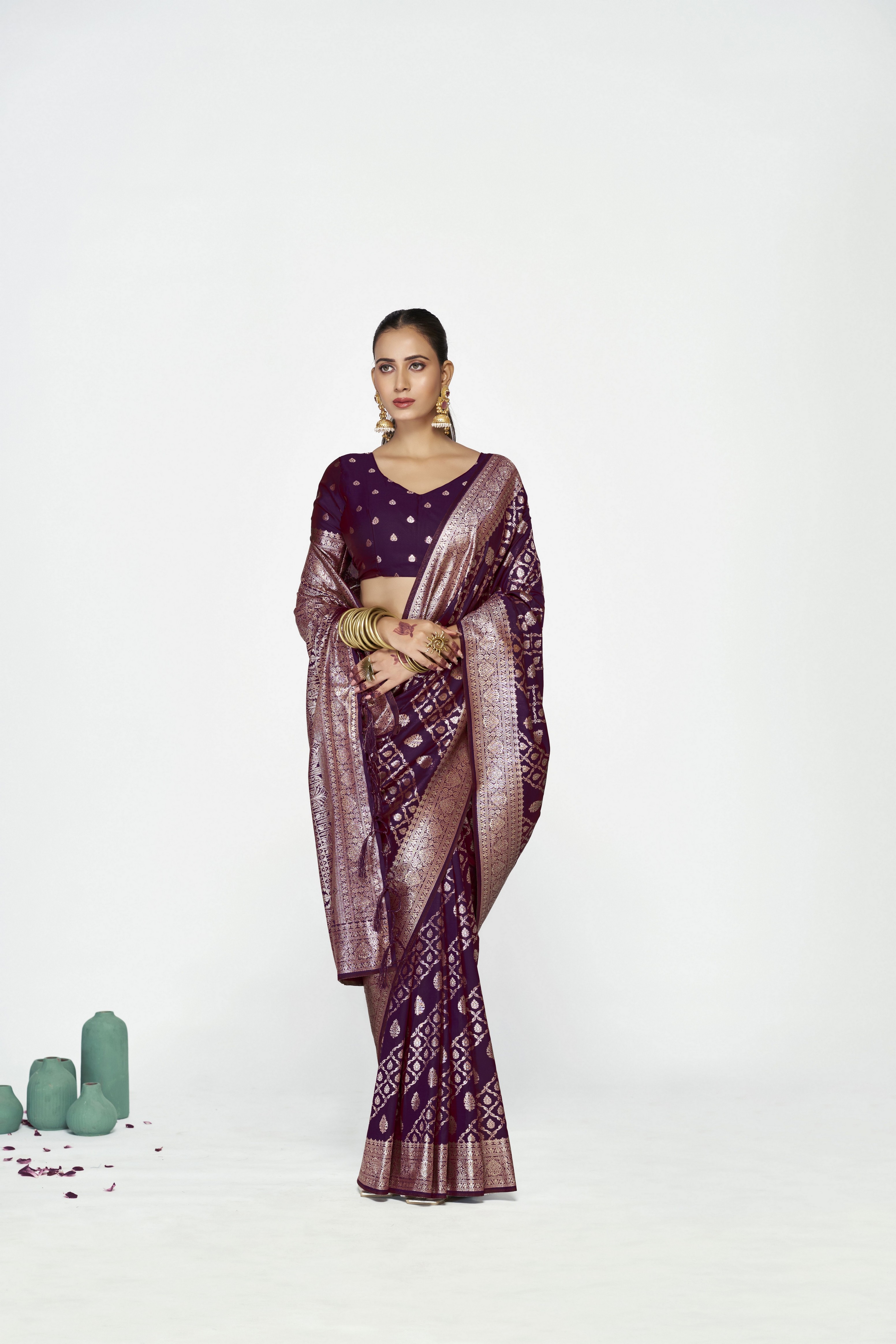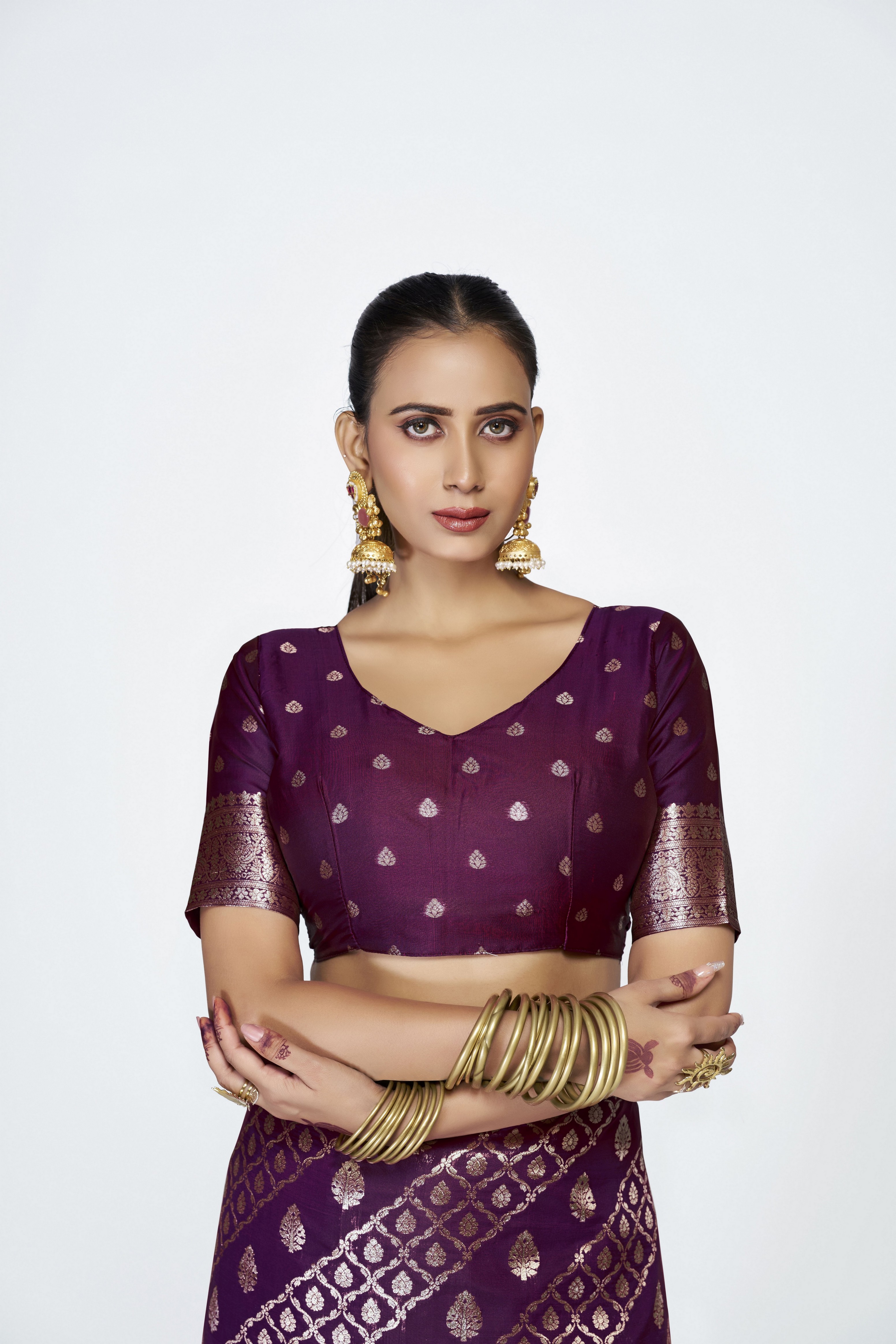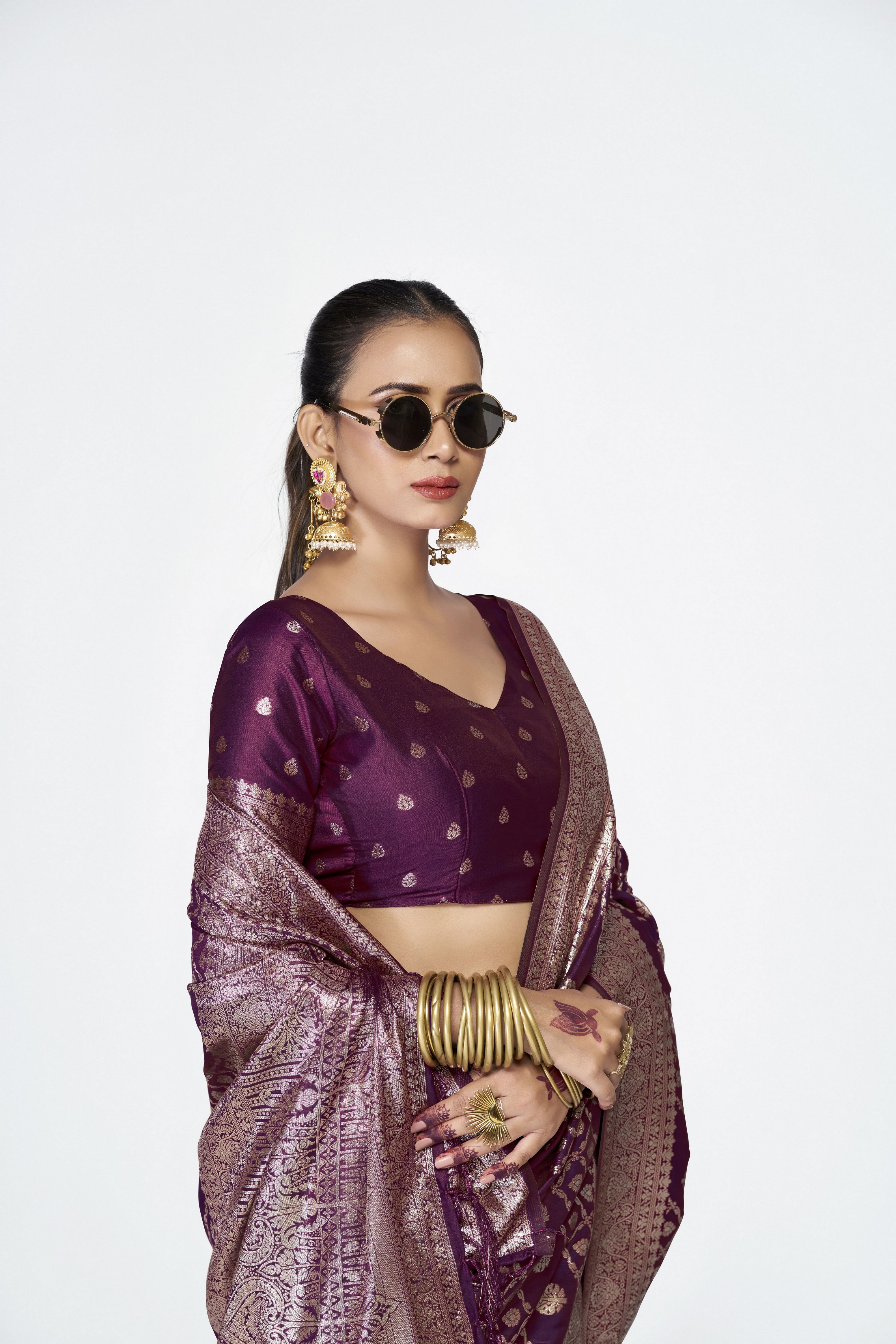 Purple color Banarasi Silk fabric Woven Zari Designer Saree