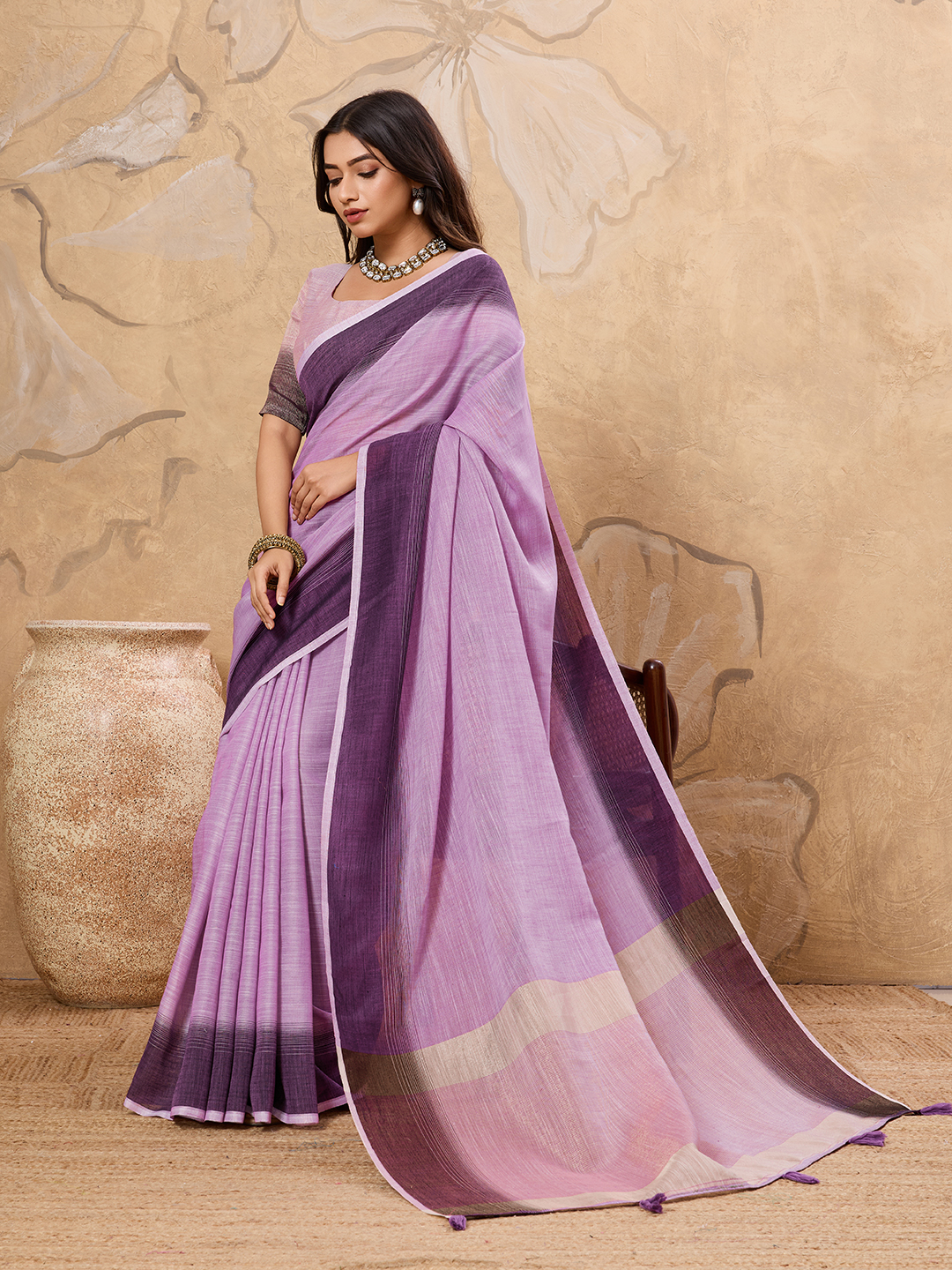Purple color Linen Based Fabric Ethnic Woven Designer Ceremonial Saree