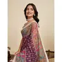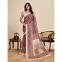 Purple Color Linen Fabric Beautiful Printed Ceremonial Saree