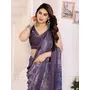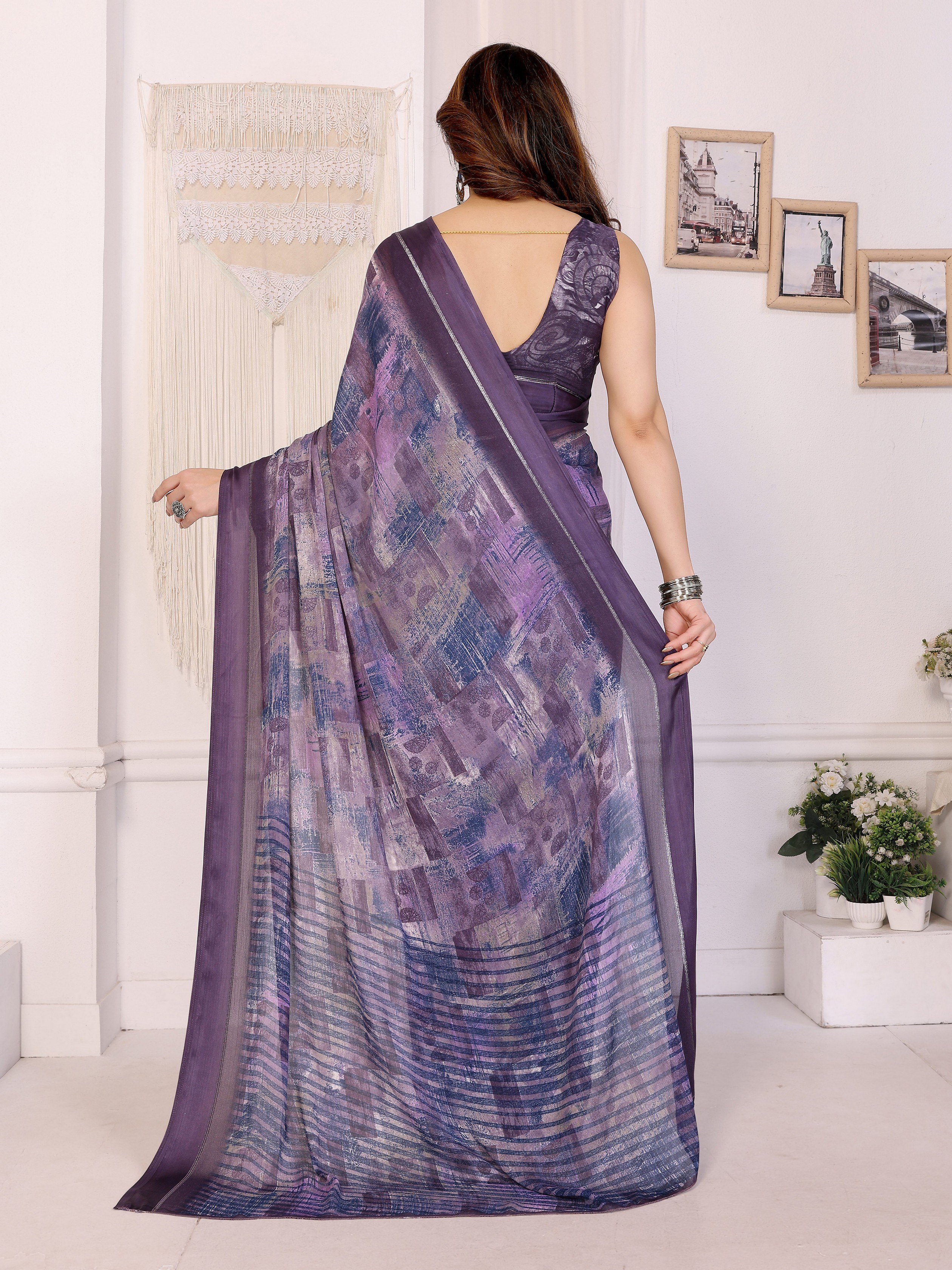 Purple Color Moss Satin Patta Fabric Designer Printed Saree