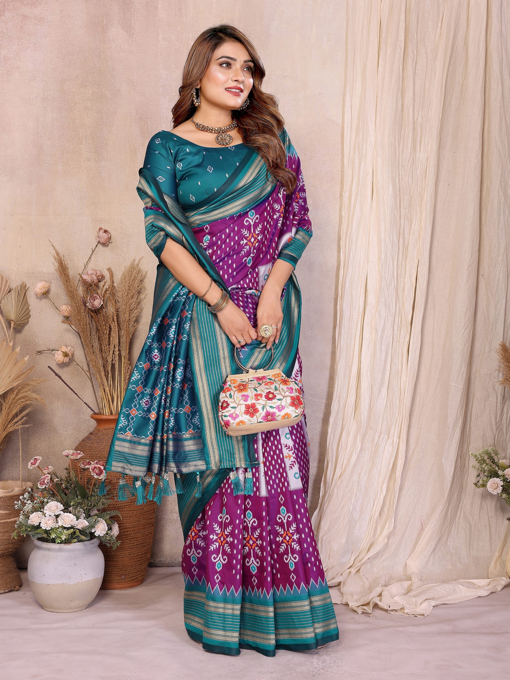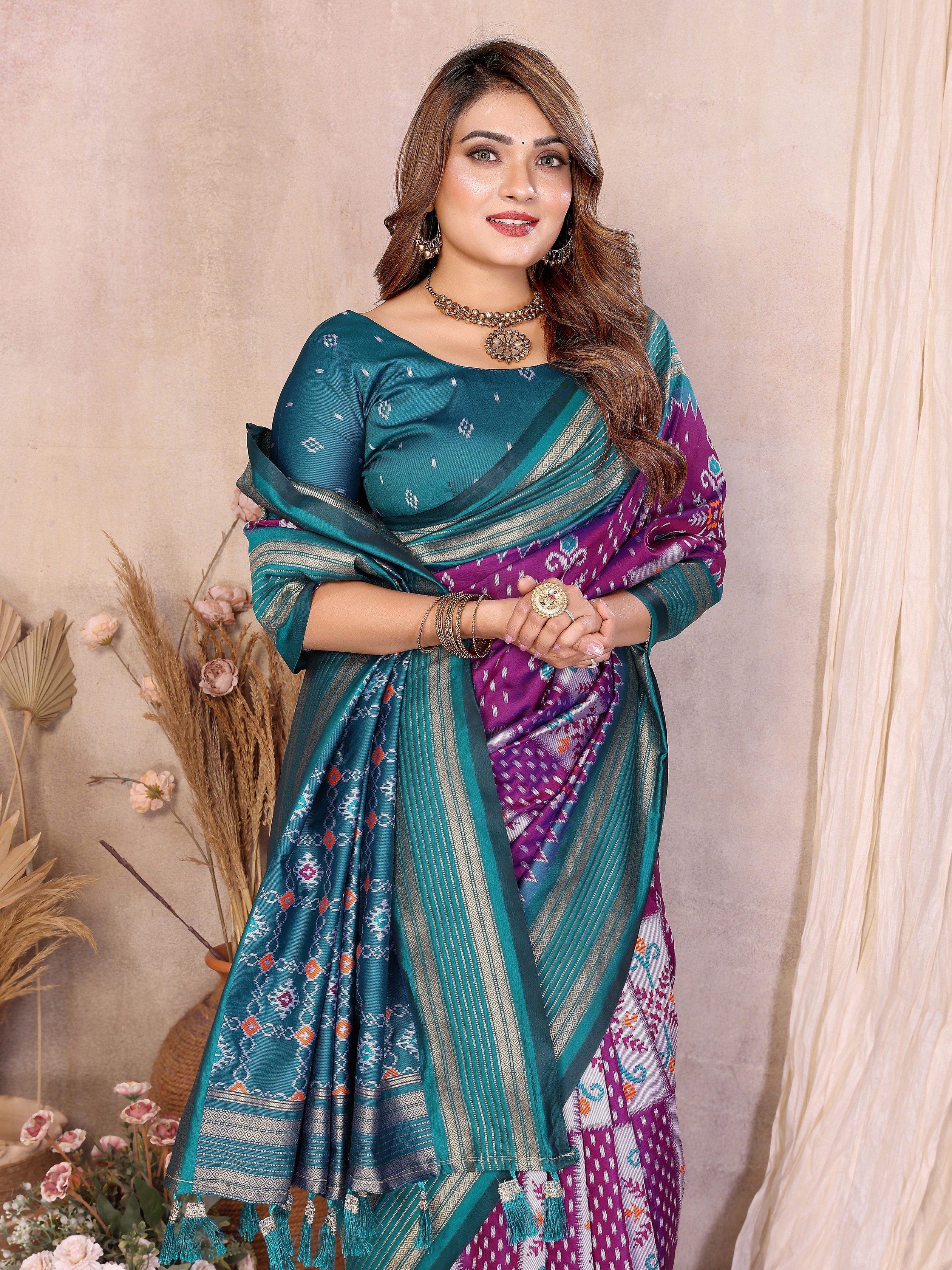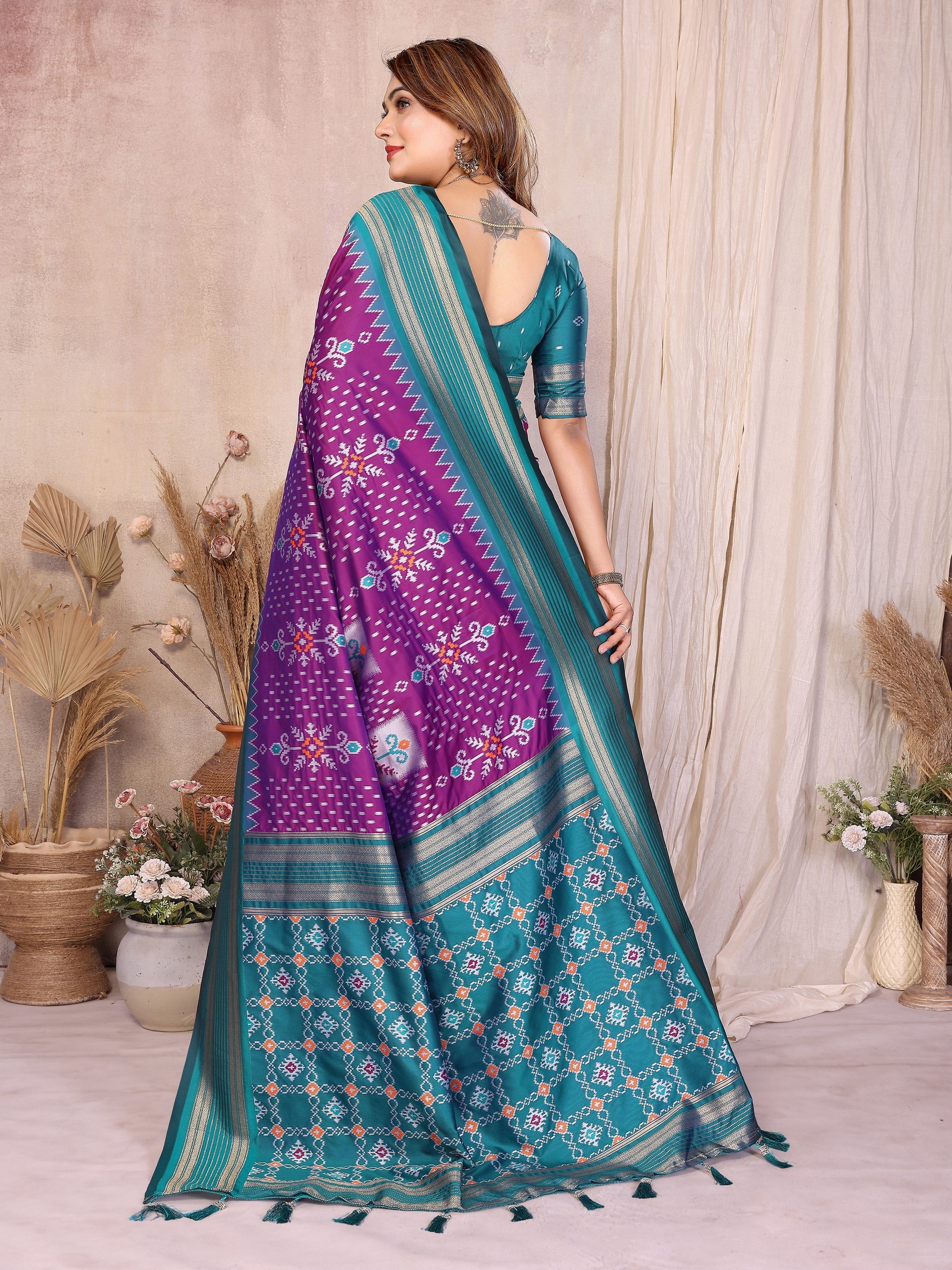Purple Color Soft Silk Fabric Ikkat Weaving Designer Traditional Partywear Saree
