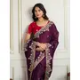 Purple Color Star Georgette Fabric Designer Embroidery Work Heavy Ceremonial Saree