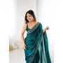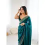 Rama Color Fendy Satin Fabric Zarkan Hand Work Designer Bollywood Style Saree
