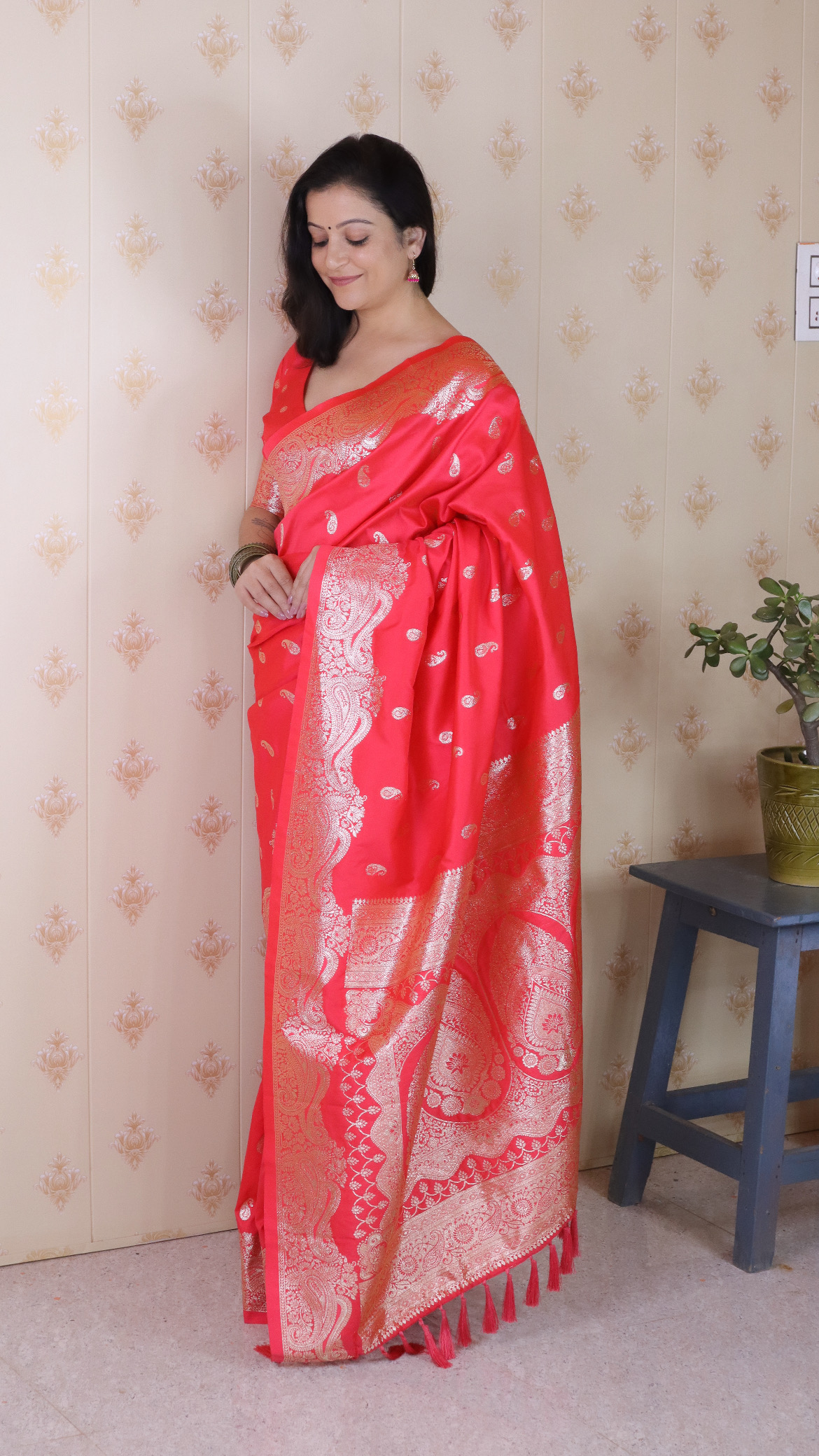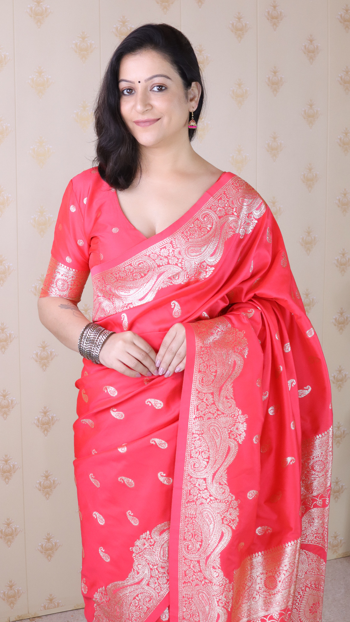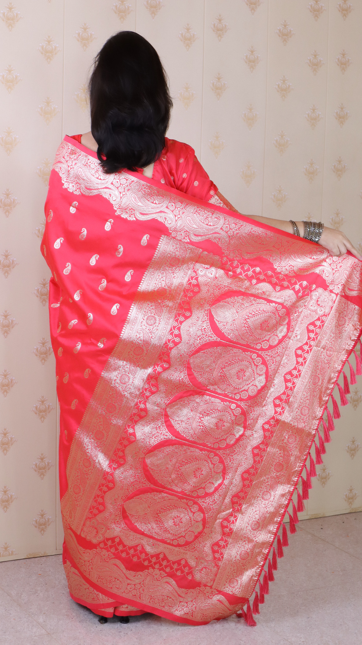 Red Color Banarasi Silk Saree Woven Silver Jari Designer Ceremonial Partywear Saree