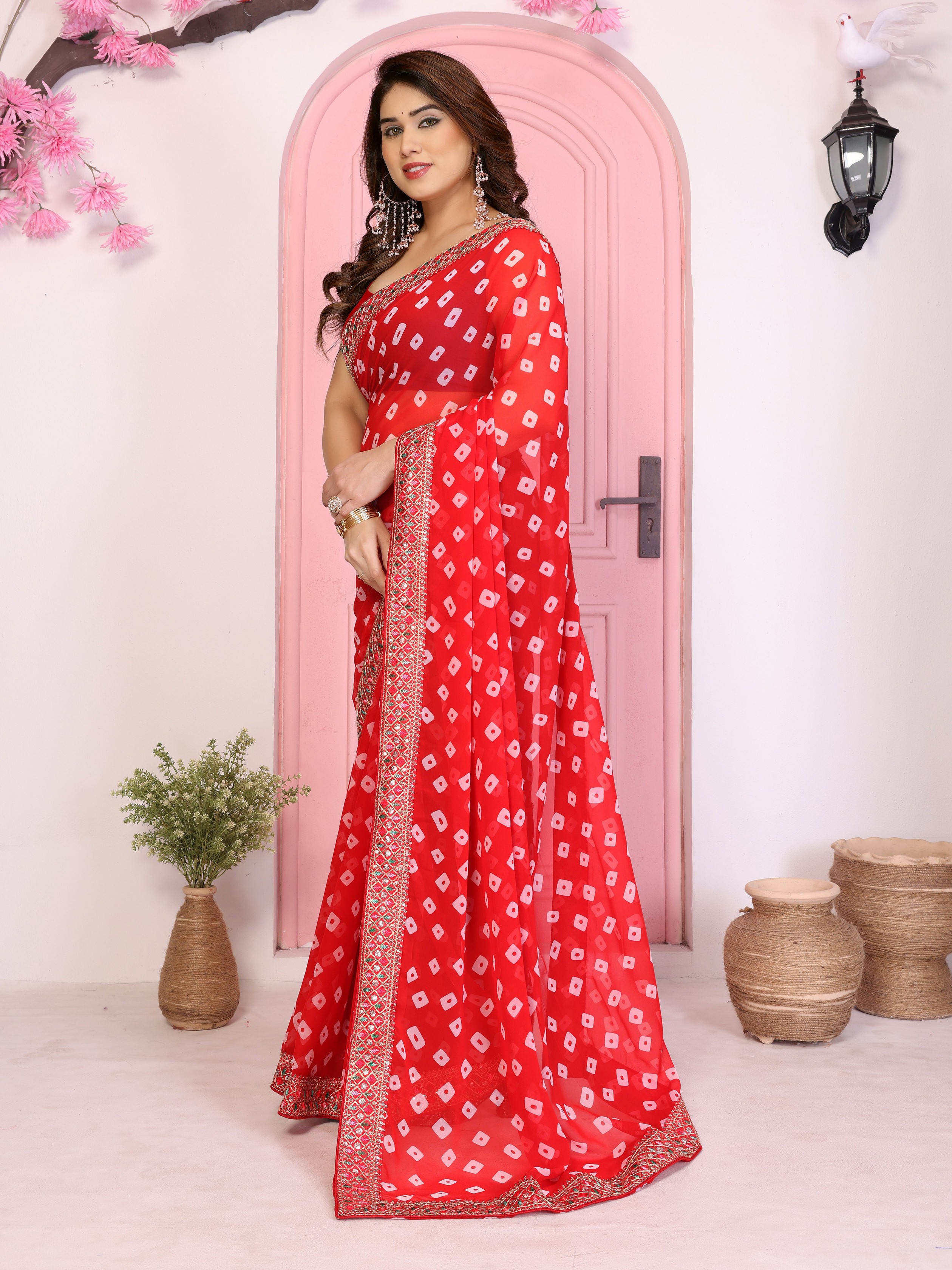 Red Color Georgette Fabric Embroidered Partywear Saree
