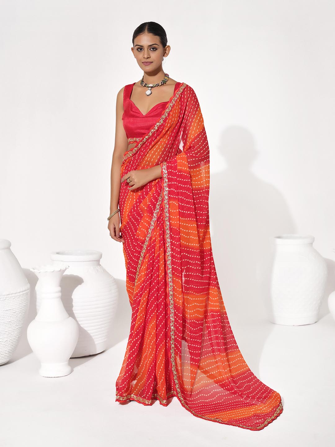 Red Color Georgette Girlie Designer Printed Saree For Rich Sophisticated Looks